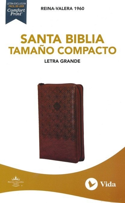 - Biblia compacta. Letra grande. Imitación piel. Café. Cremallera - RVR60