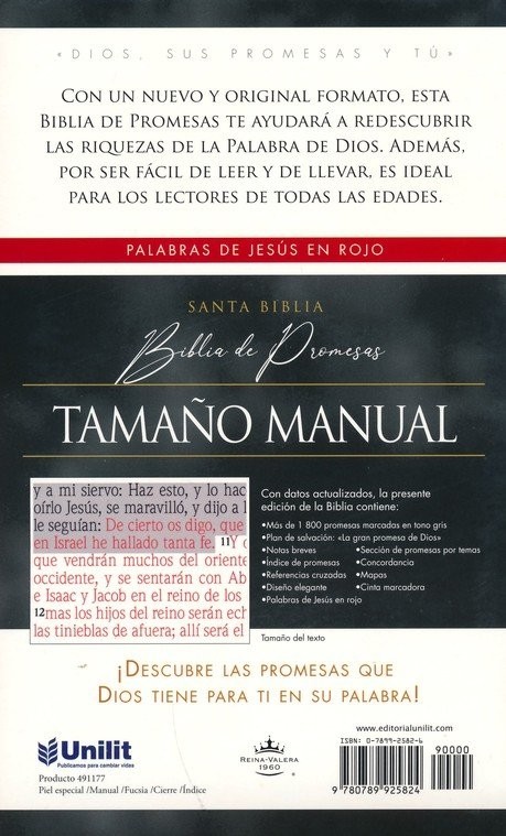 - Biblia de promesas. Manual. Letra grande. 2 tonos. Fucsia. Cremallera. Índice - RVR60