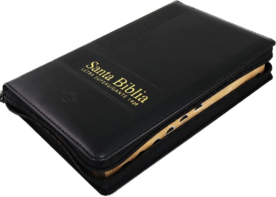 - Biblia manual. Letra gigante. Imitación piel. Negro. Cremallera. Índice - RVR60