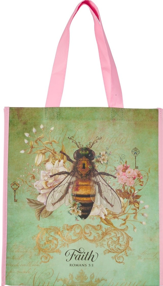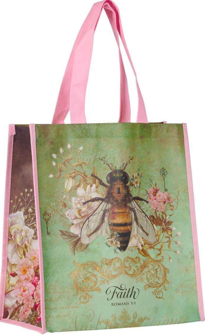 Mientras realiza sus mandados a lo largo del día, la bolsa de asas revestida no tejida Faith Bee Green le recordará que su fe en Cristo ha traído la paz con Dios, revelando el secreto del gozo eterno inspirado por Dios.