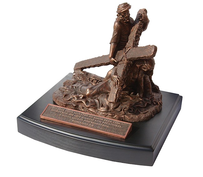 - Escultura Jesús y la Cruz (Romanos 5:8). Resina moldeada a mano/MDF