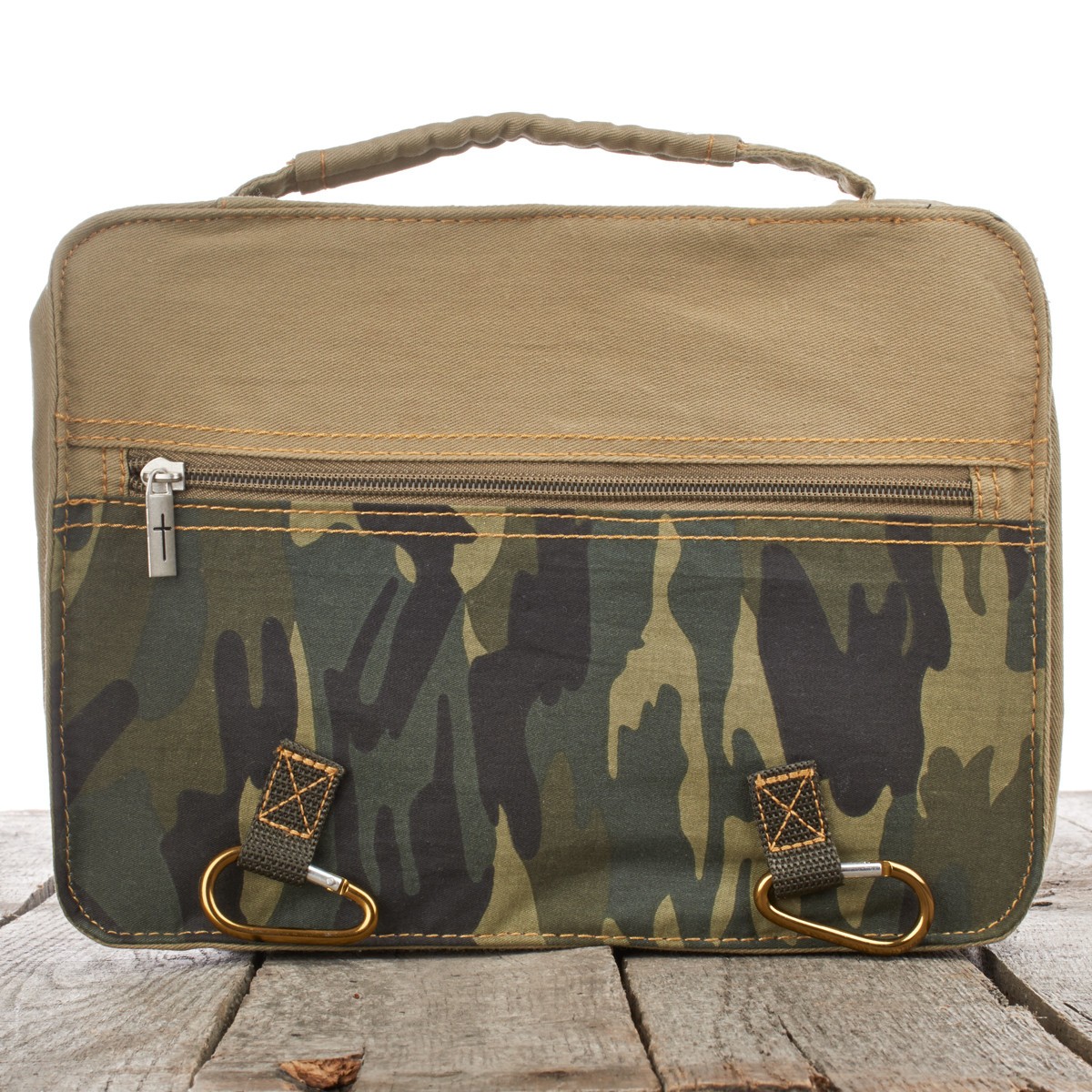 - Funda para Biblia 1 Timoteo 1:18. Lona. Camuflaje - L