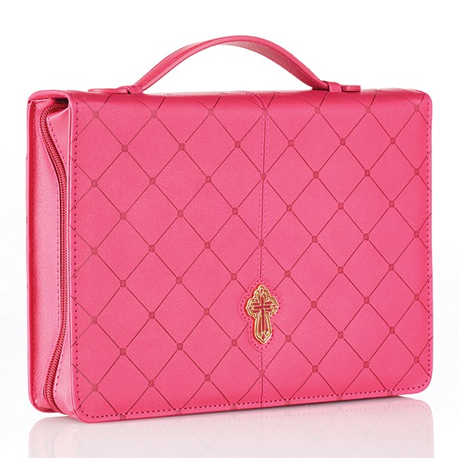 - Funda para Biblia Cruz. Imitación piel. Rosa - L