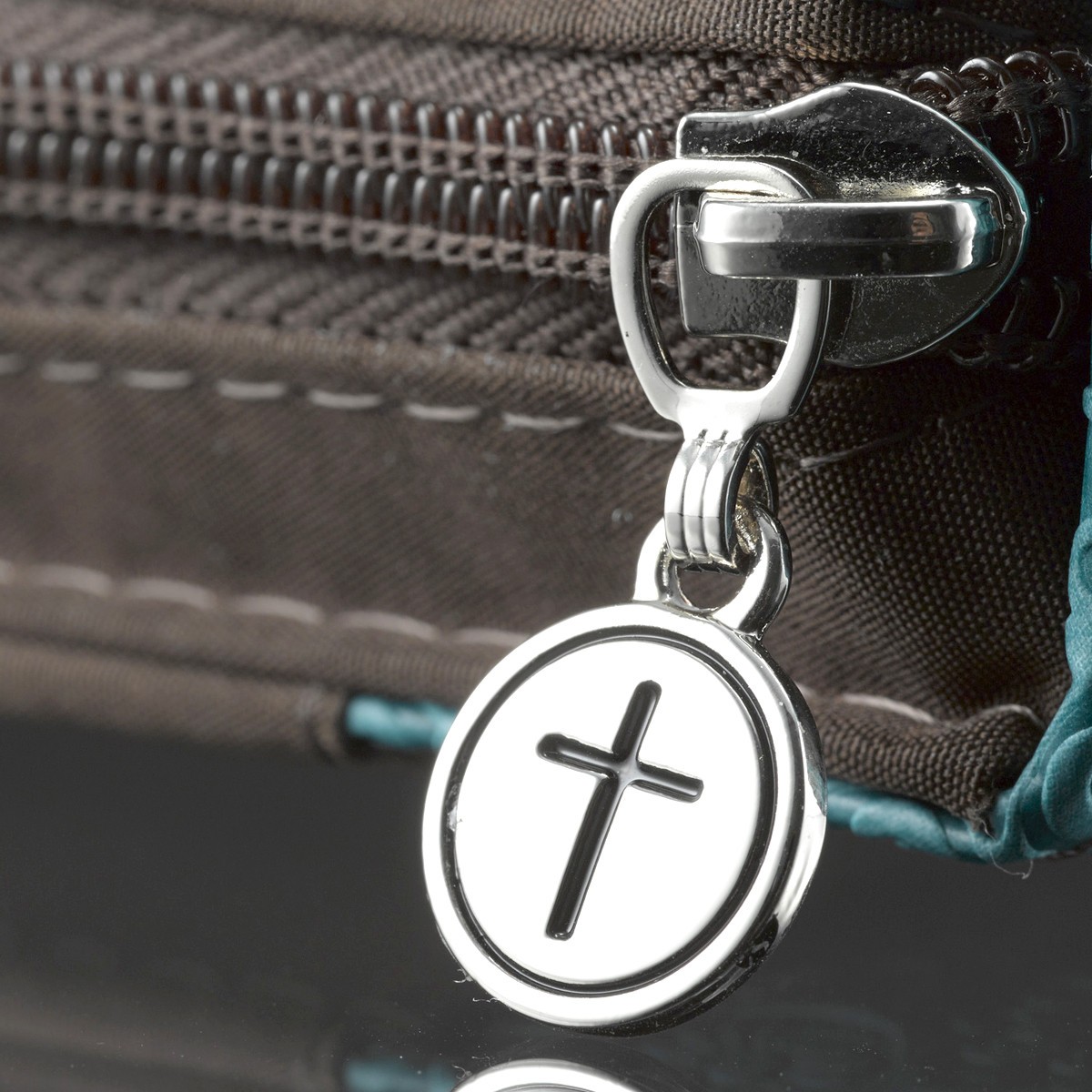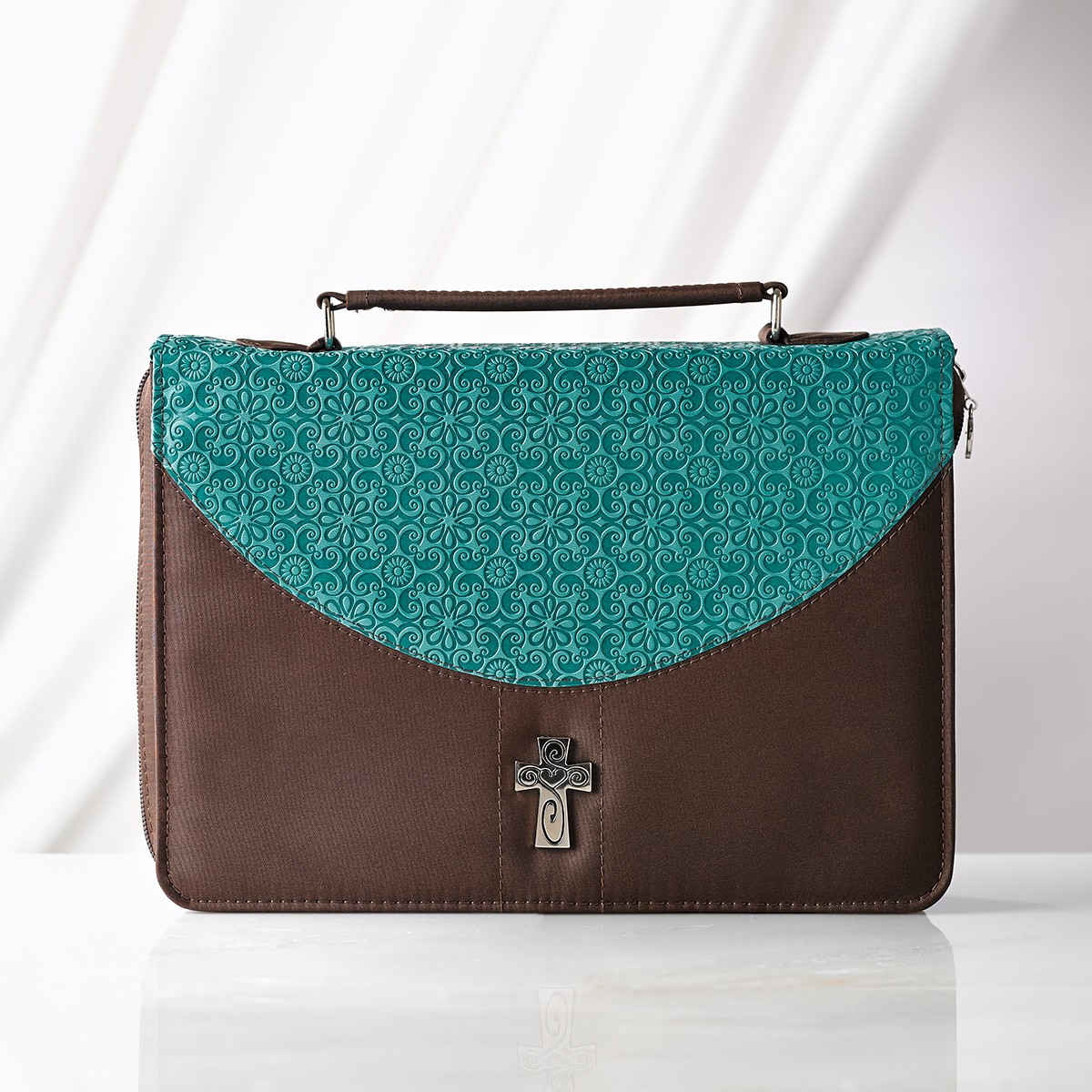 - Funda para Biblia Cruz. Microfibra. Turquesa y marrón - L