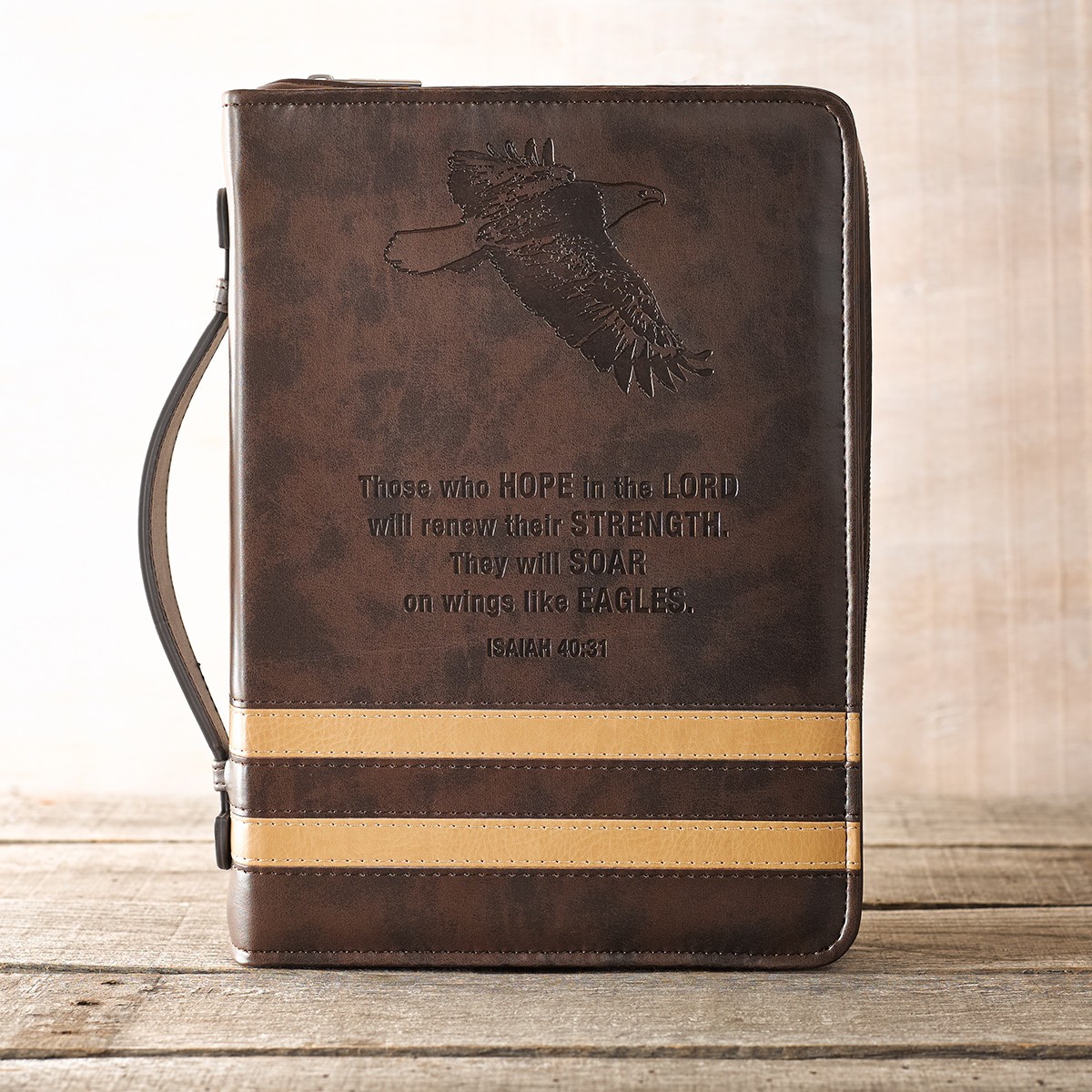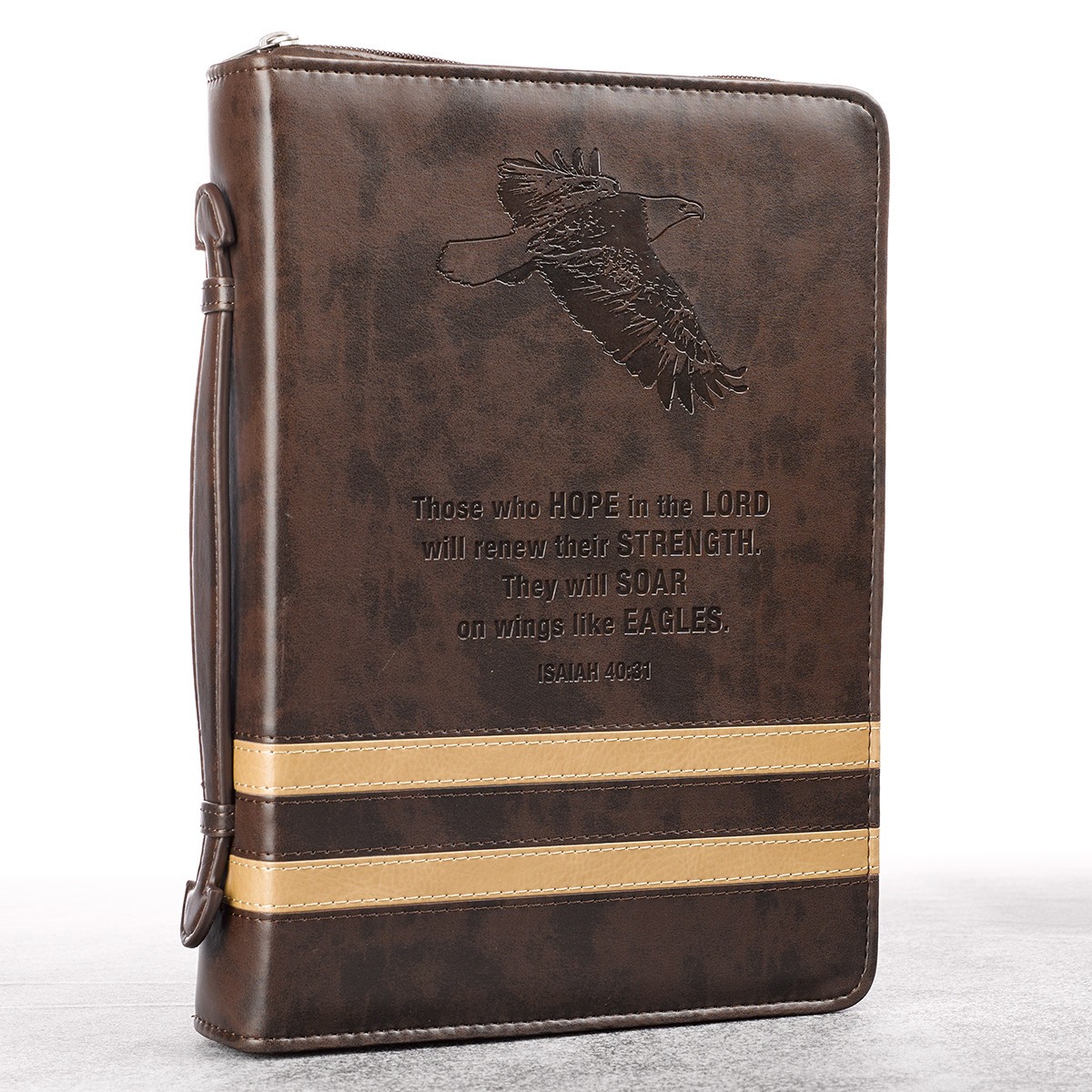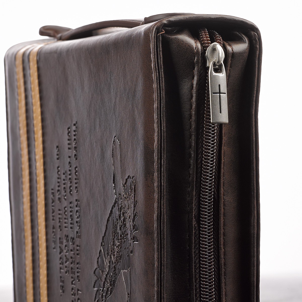 - Funda para Biblia Isaías 40:31. Imitación piel. Marrón y beige - L