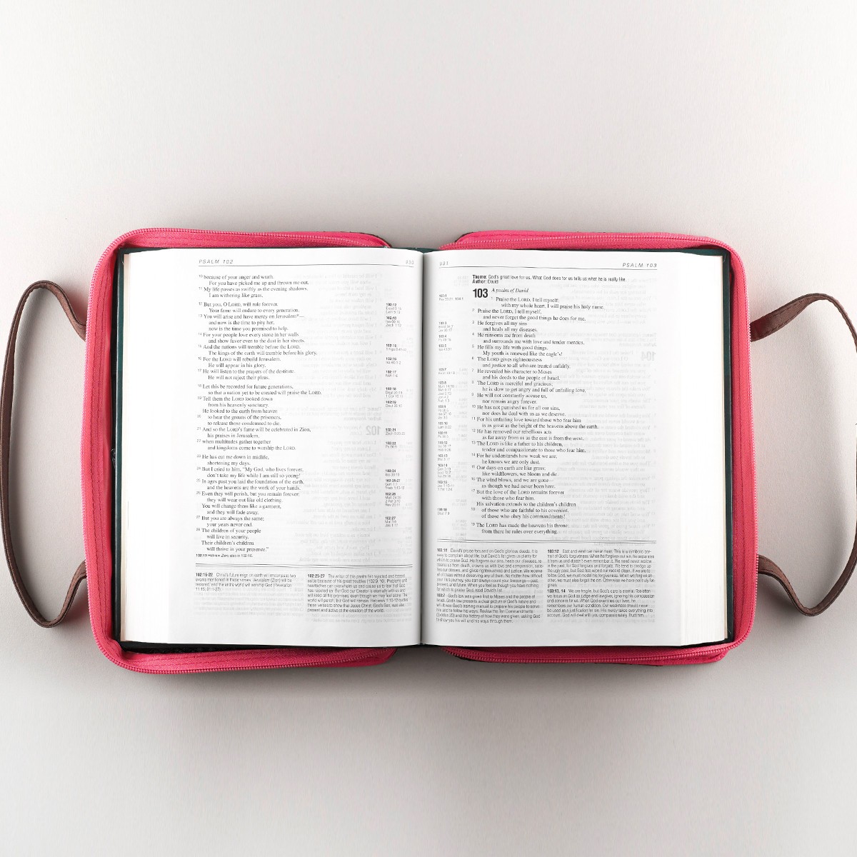- Funda para Biblia Salmo 46:10. Microfibra. Marrón y rosa - L