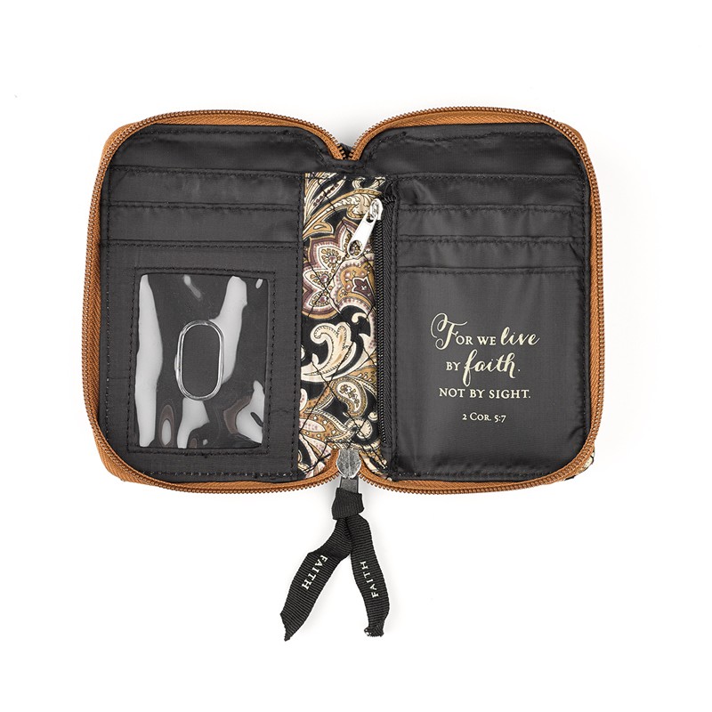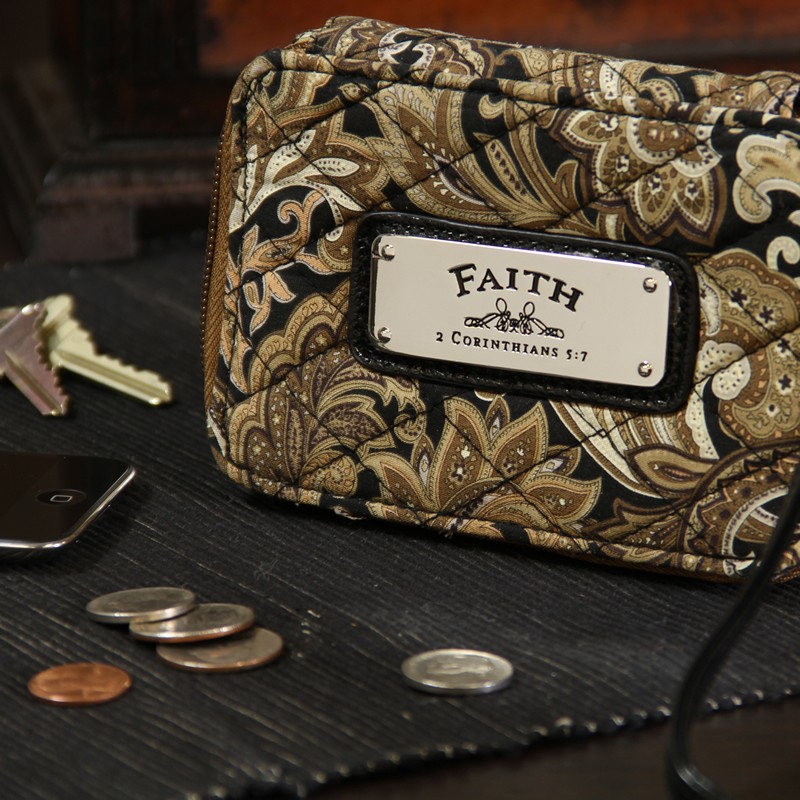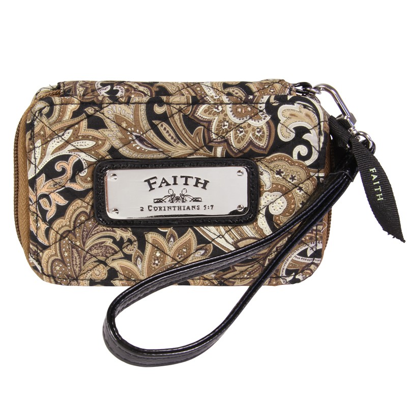 - Monedero, billetera y portamóvil Faith. Microfibra. Estampado marrón