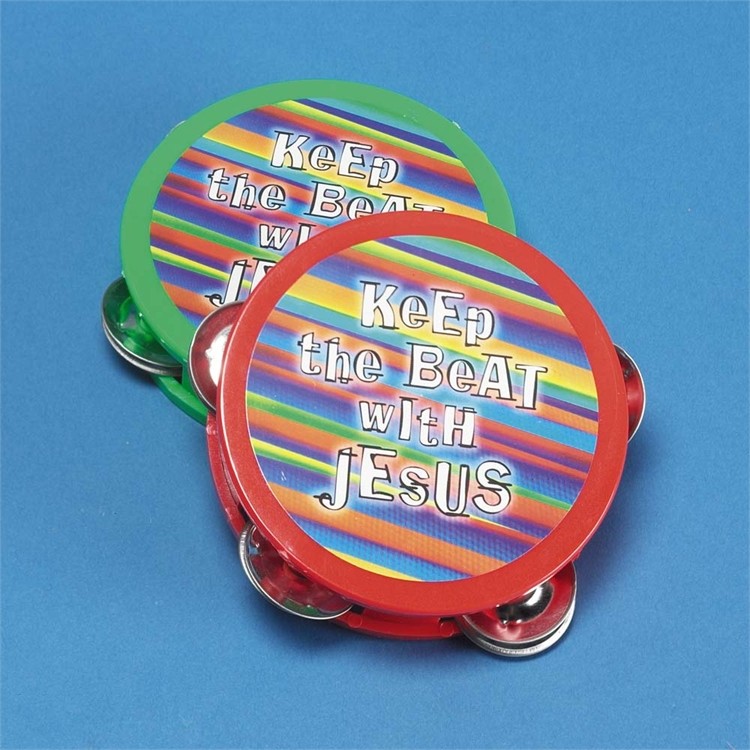 - Pandereta mini Keep the beat with Jesus. Plástico. 2 modelos