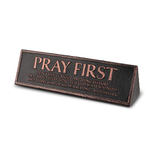 - Placa sobremesa Pray first. Piedra artificial. Cobre